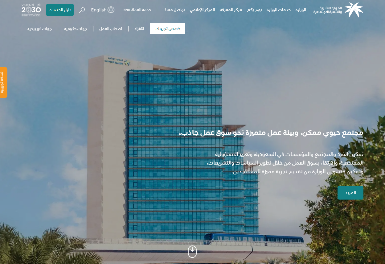 - قم بالذهاب إلى الموقع الرسمي لوزارة الموارد البشرية والتنمية الاجتماعية.