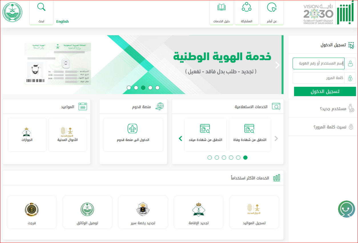 - قم بالدخول إلى منصة أبشر الإلكترونية.