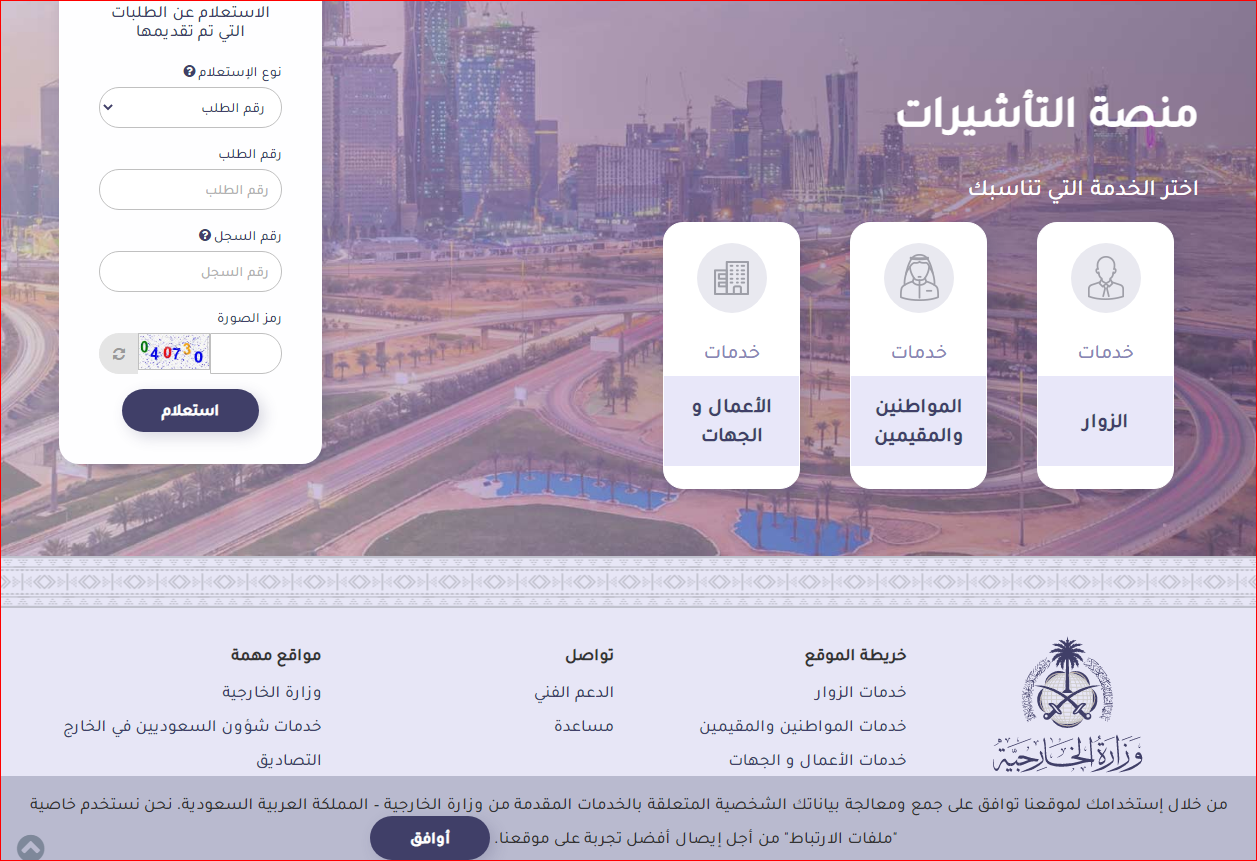 - ينقلك الموقع إلى "خدمات التأشيرات".