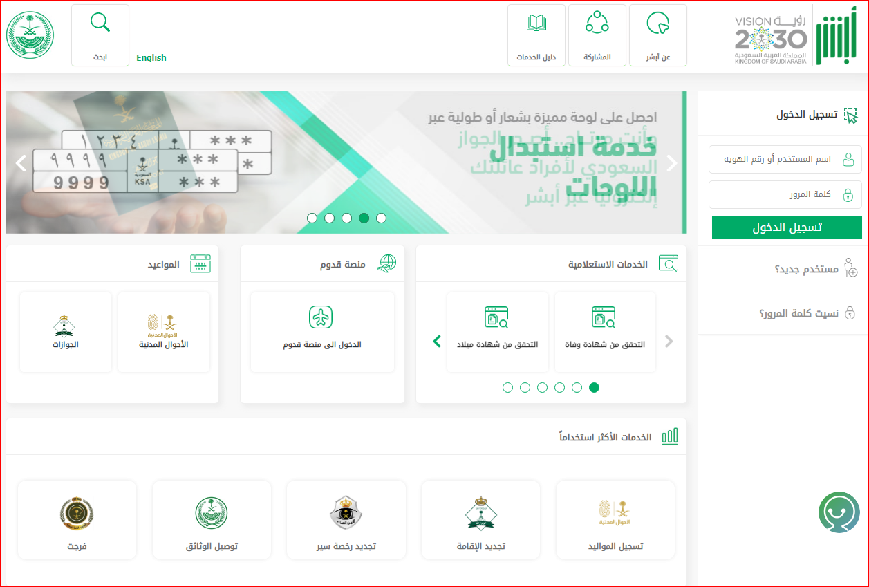 - قم بالدخول إلى منصة أبشر الإلكترونية.