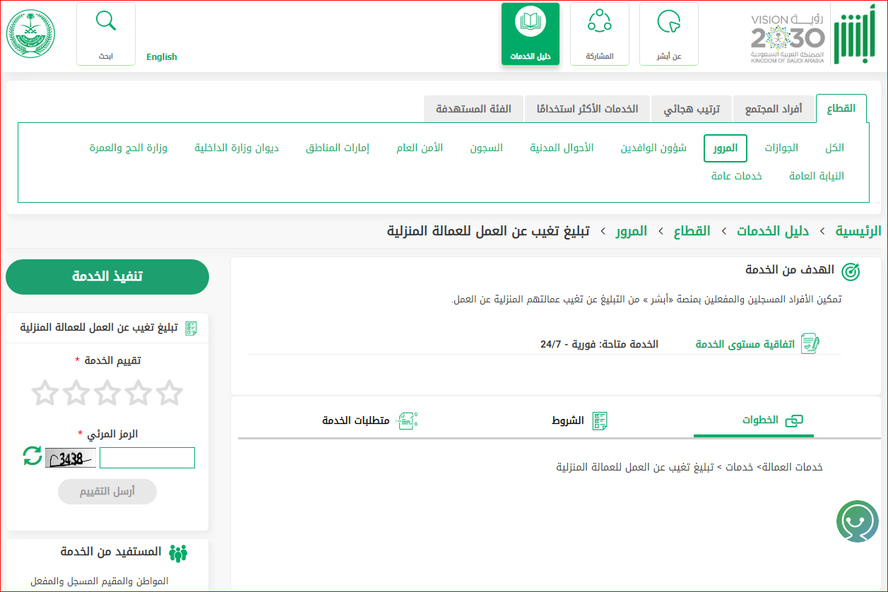 بعدما تستوفي كافة الشروط السابقة وتتأكد من توافرها وتطابقها معك ومع الوافد العامل معك، يمكنك الآن تقديم بلاغ تغيب عن العمالة المنزلية بالخطوات التالية: