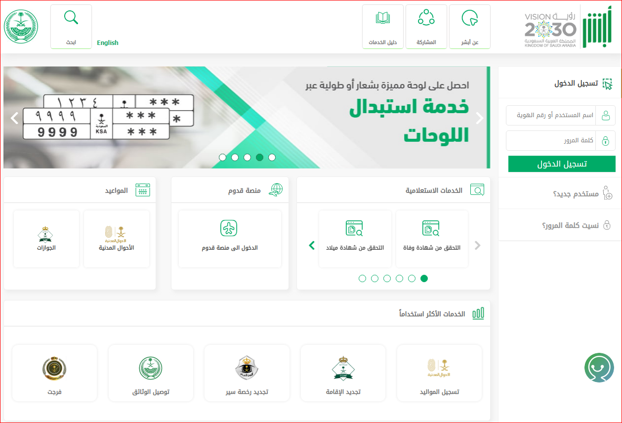 - قم بالذهاب أولًا إلى الموقع الرسمي لمنصة أبشر الإلكترونية.