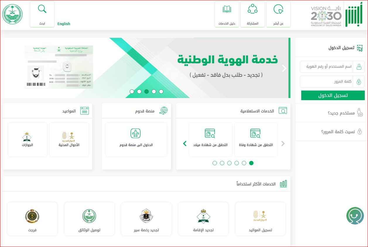- قم بالدخول إلى الموقع الرسمي لمنصة أبشر الإلكترونية.