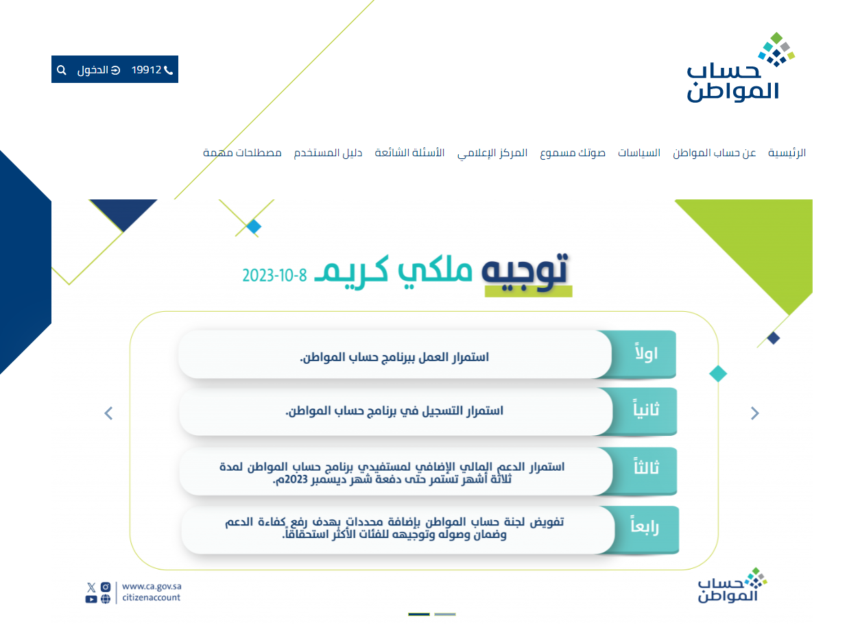 - التوجه مباشرة إلى الموقع الرسمي لحساب المواطن.