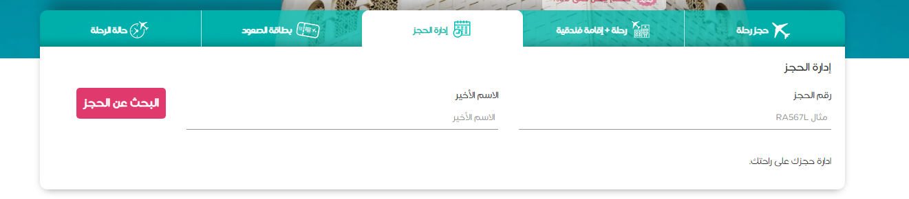 - من ثم الضغط على تبويب "إدارة الحجز" من الصفحة الرسمية.