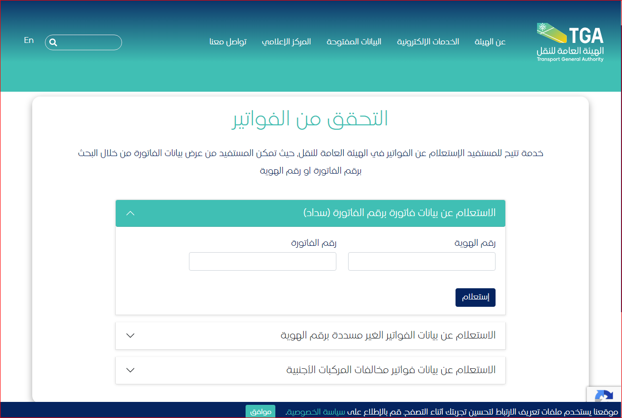 - اختر من بين تلك الخدمات "الاستعلام عن المخالفات والفواتير".