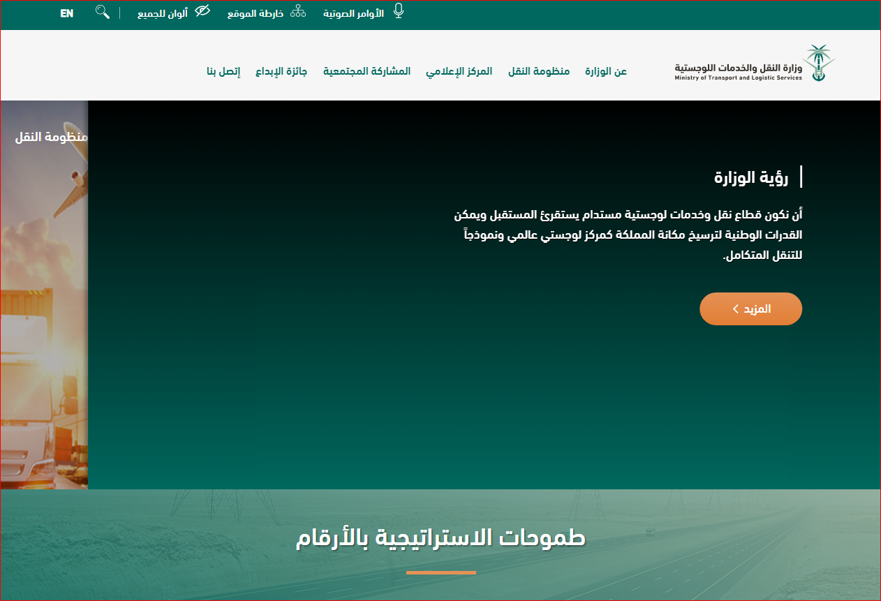 - قم بالتوجه إلى البوابة الإلكترونية لوزارة النقل السعودية.