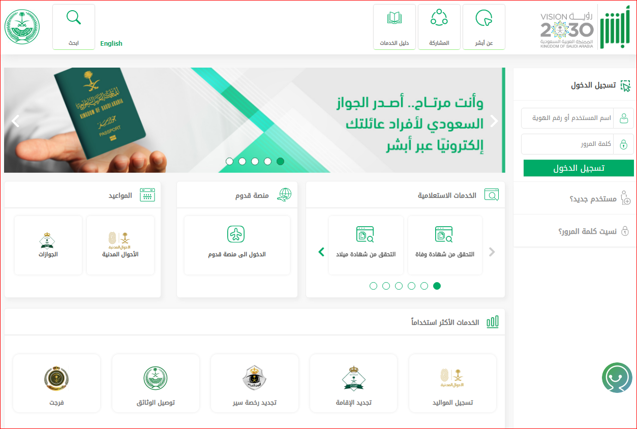 - قم بالذهاب إلى الموقع الرسمي لمنصة أبشر الإلكترونية.