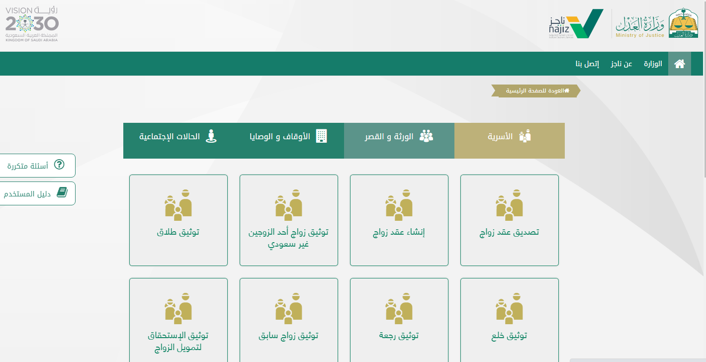 يستطيع الآن المواطنون والمقيمون بالمملكة العربية السعودية إصدار حصر ورثة عبر منصة ناجر التابعة لوزارة العدل، وذلك عبر اتباع الخطوات الآتية: