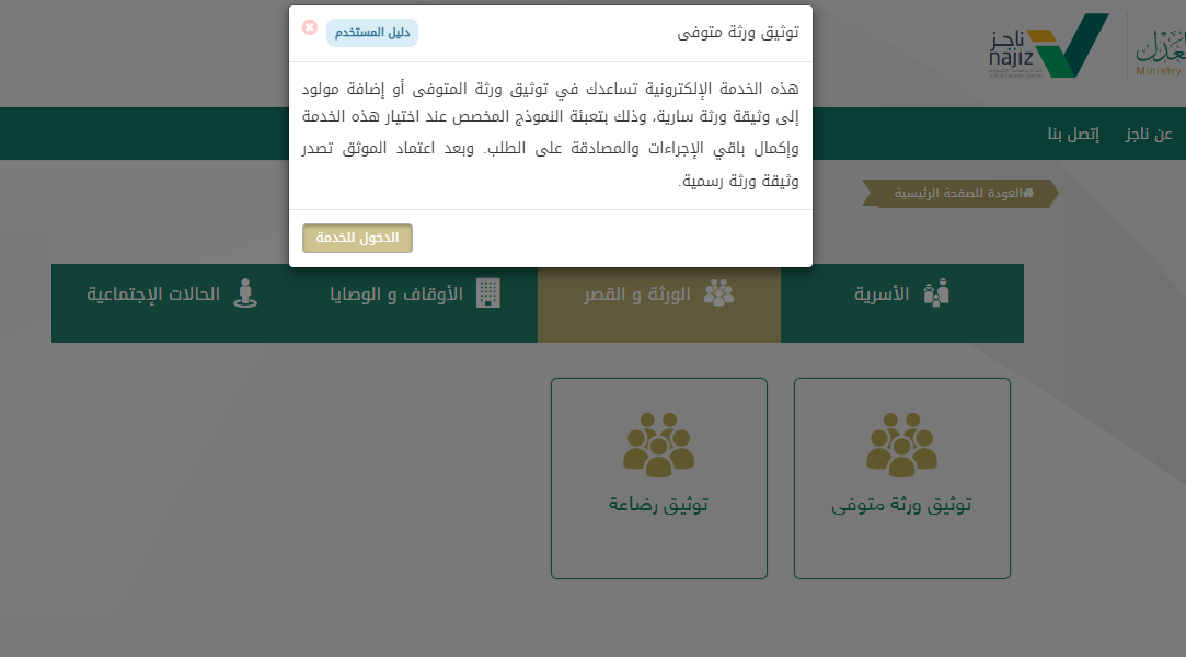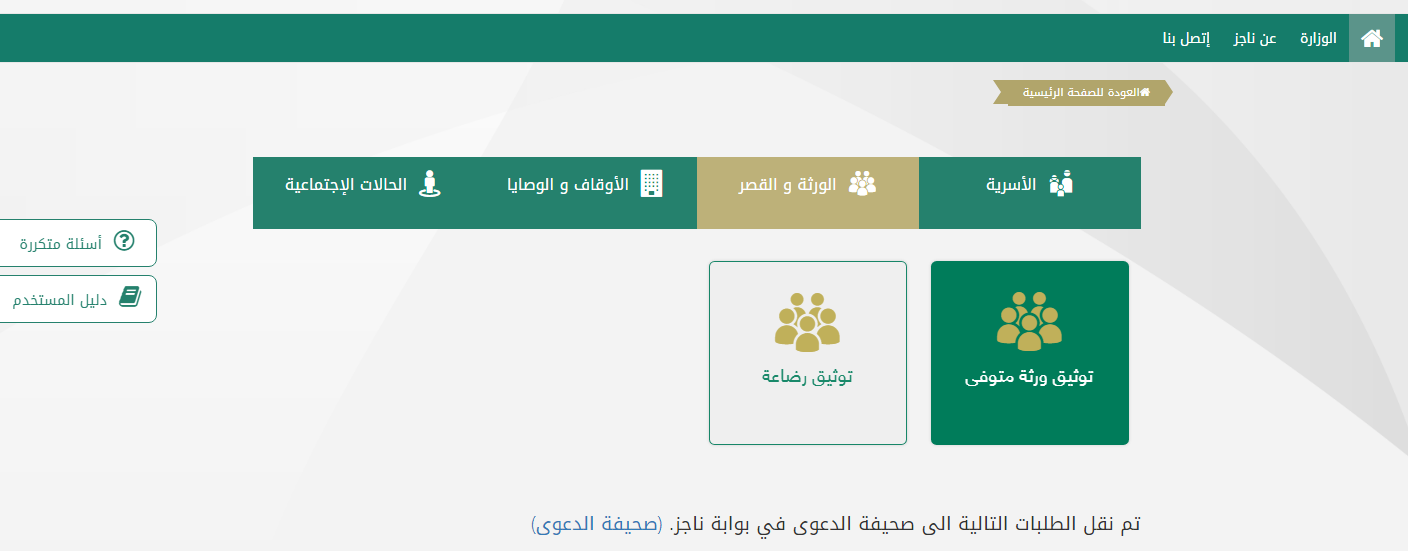 - من ثم اختيار تبويب "الورثة والقصر" من أعلى واجهة الموقع.