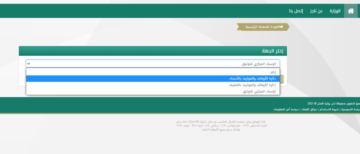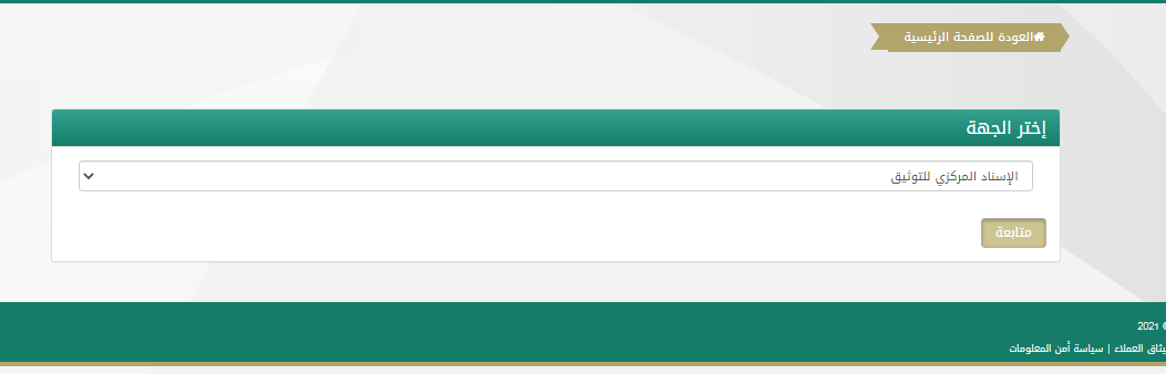 - بعد ذلك سيُطلب اختيار الجهة من ضمن القائمة المنسدلة.