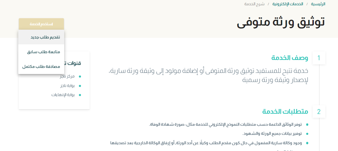 - الولوج إلى صفحة خدمة توثيق ورثة متوفي مباشرةً.
