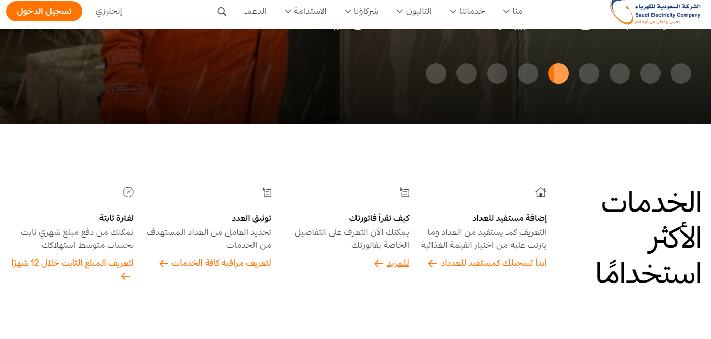 - الولوج إلى موقع الشركة السعودية للكهرباء.