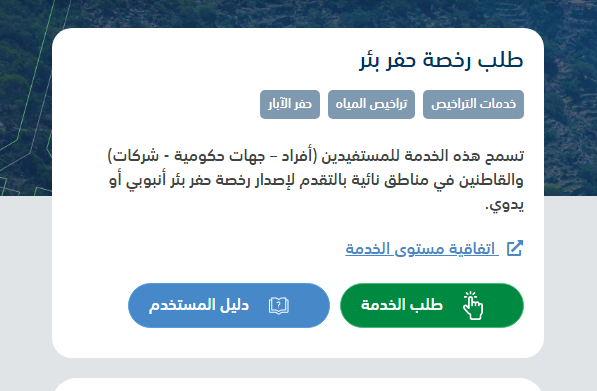- النقر على طلب رخصة حفر بئر.