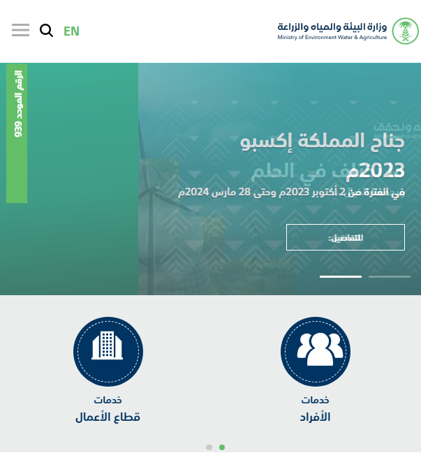 - الذهاب إلى الموقع الإلكتروني الرسمي لوزارة البيئة والمياه والزراعة.