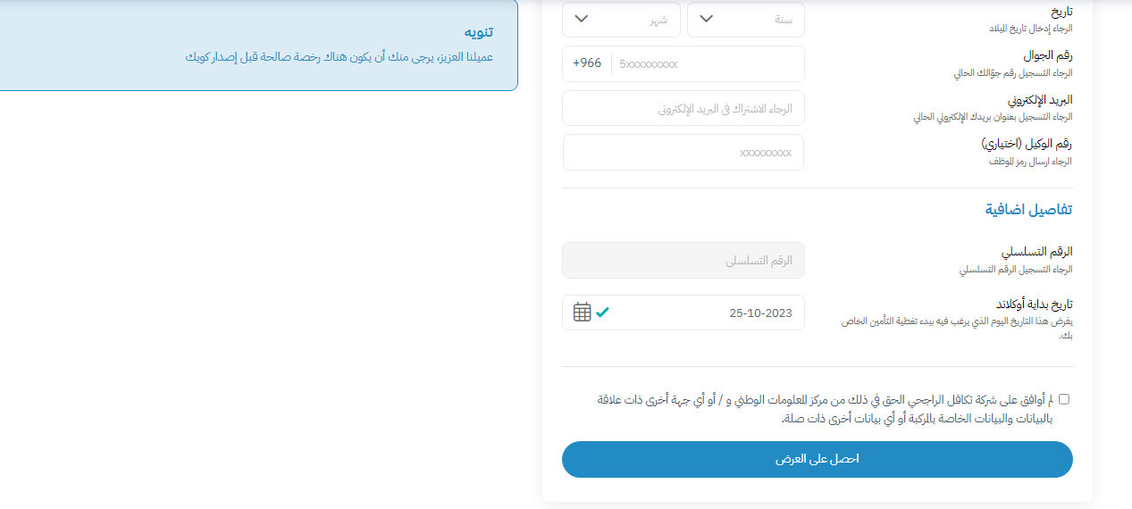 - اتباع باقي التعليمات لإجراء تجديد وثيقة التأمين في تكافل مصرف الراجحي.