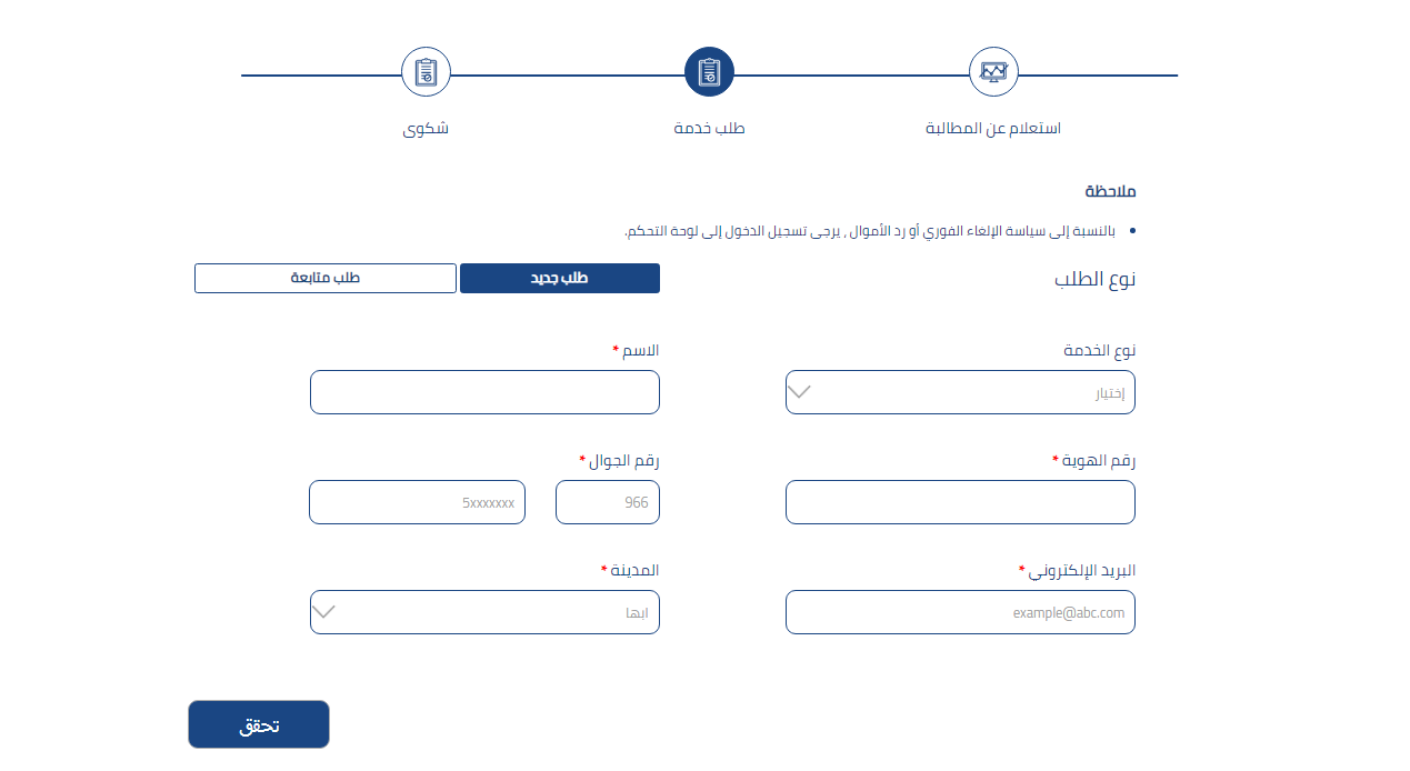 - من ثم تحديد نوع الخدمة من القائمة المنسدلة.