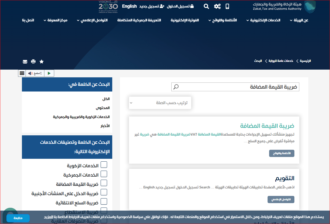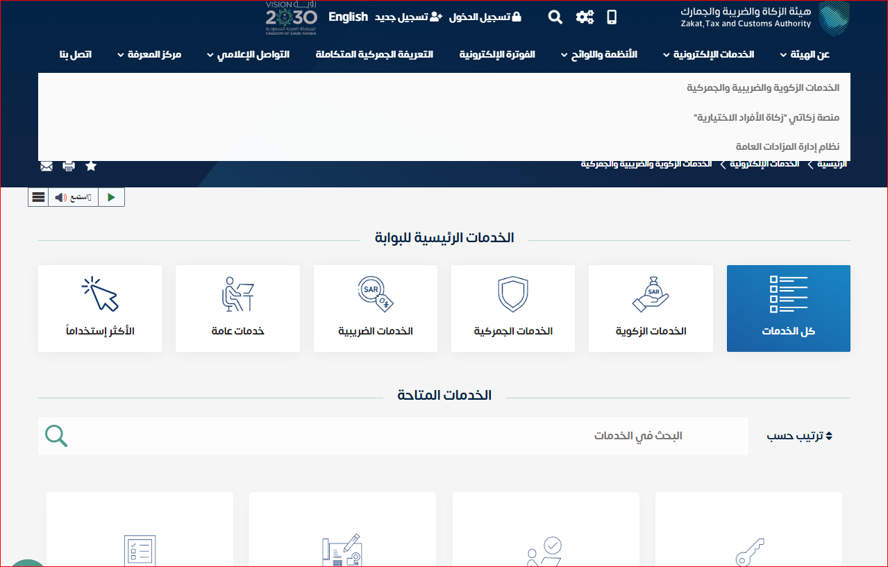 - قم بالذهاب إلى الموقع الرسمي هيئة الزكاة والضريبة والجمارك.