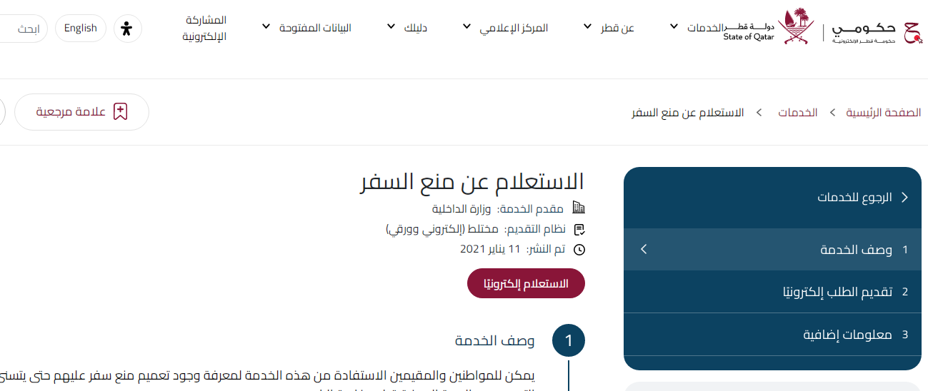 - الذهاب إلى الموقع الإلكتروني المتعلق بالاستعلام عن منع السفر.