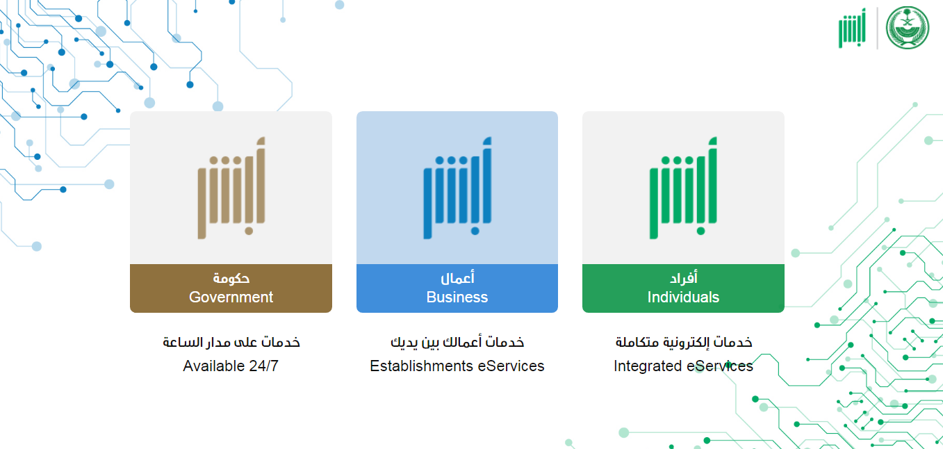 - الولوج إلى بوابة منصة أبشر الإلكترونية.