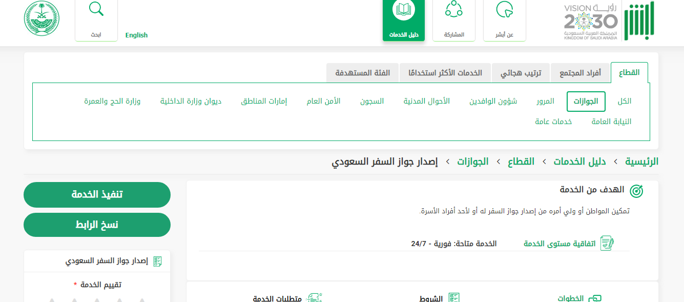 - تحديد قطاع "الجوازات" من الأعلى، وسوف تظهر باقة من الخدمات الخاصة بهذا القطاع.