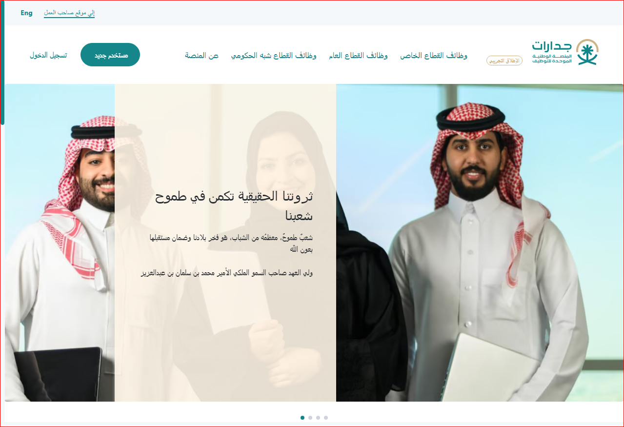 - قم بالتوجه إلى الموقع الرسمي لمنصة "جدارات".