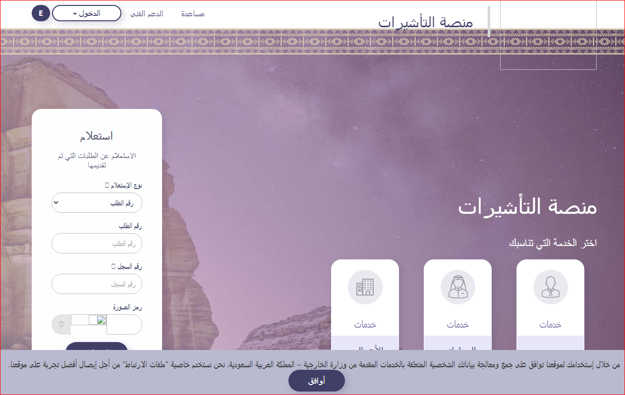 - قم بالذهاب إلى الموقع الرسمي لمنصة التأشيرات.