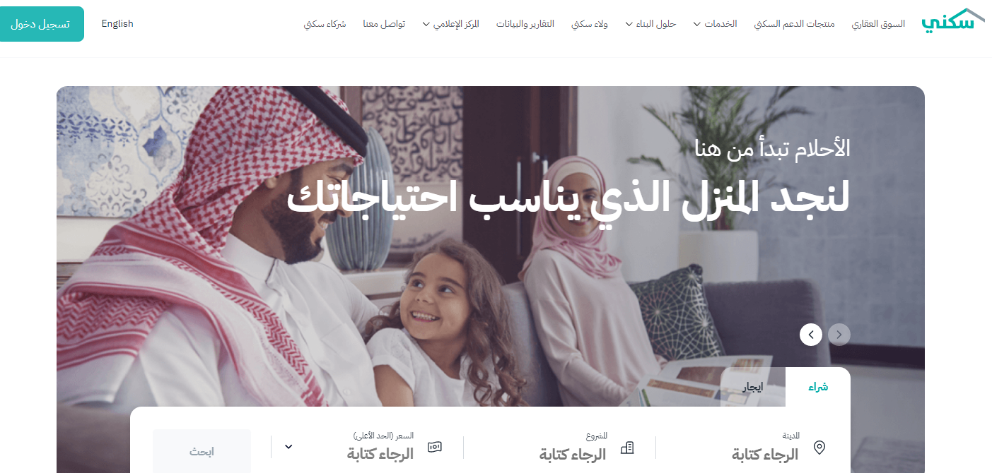 - الذهاب إلى منصة سكني الإلكترونية.