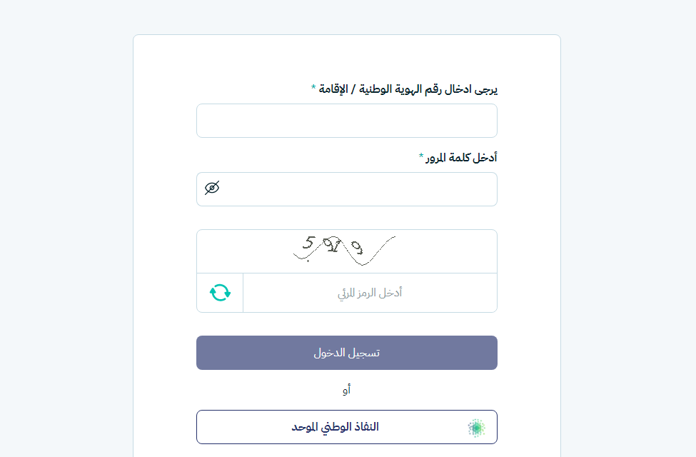 - سيتم الانتقال إلى صفحة أخرى يُطلب فيها إدخال رقم الهوية الوطنية أو رقم الإقامة.