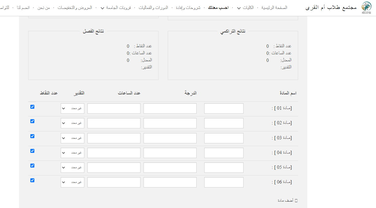 - الولوج إلى الصفحة المخصصة لحساب المعدل التراكمي من خلال جامعة أم القرى.