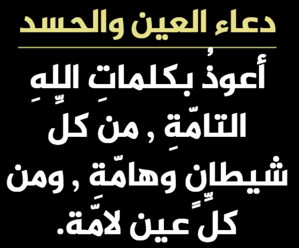 - اصرف عني العين يا رب العالمين وعافني من كل حسد يصيبني.