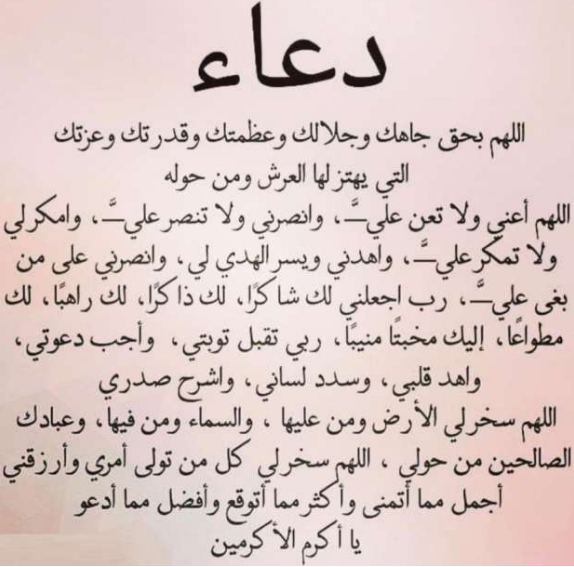 - ربي اقضي لي حاجتي التي هي عليك هينة، فأنت لا يعجزك شيء في الأرض ولا في السماء وأنت على كل شيء قدير.