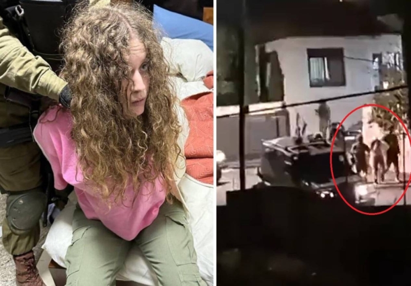 في مشهد صعب | قوات الجيش الإسرائيلي تلقي القبض على الناشطة الفلسطينية عهد التميمي