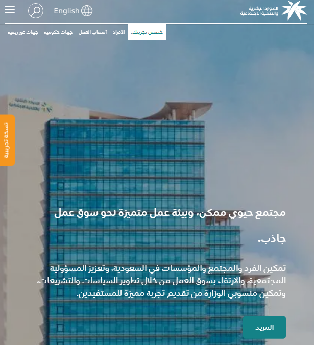 - الولوج إلى الموقع الإلكتروني الرسمي لوزارة الموارد البشرية والتنمية الاجتماعية.