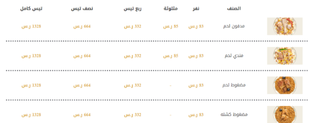 - المنيو: يمكن الاستعلام عنه بالاتصال على (0556355506).