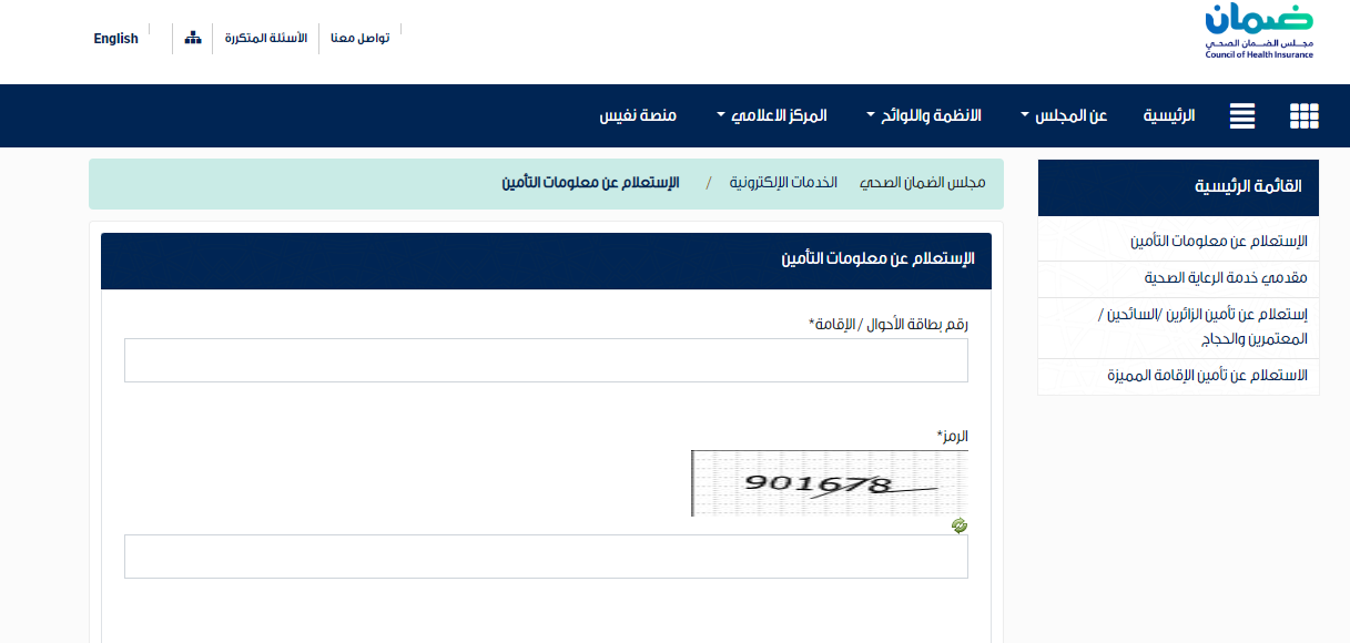 بالإمكان الاستعلام عن التأمين الطبي الخاص بالمقيمين من خلال رقم الإقامة فقط وتطبيق الخطوات التالية: