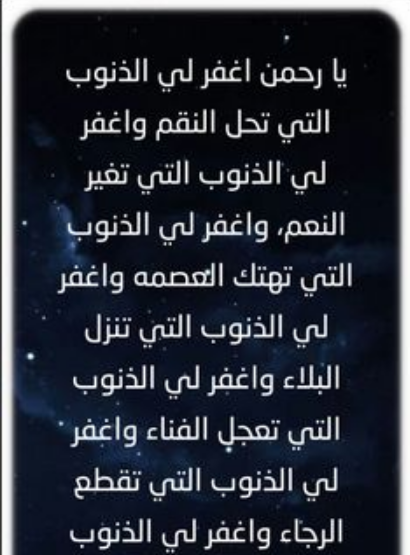 - يا الله يا رحمن يا غفار يا مجيد اغفر لعبادك جميع خطاياهم ولا تقطع عنا الرجاء، وسامحنا يا غفور عن كل ما صدر منا بقصد أو دون قصد.