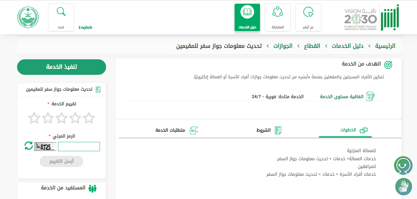 من الجدير بالذكر أنه يمكن تحديث بيانات جواز السفر القديم للمقيمين في المملكة بصورة إلكترونية من خلال إجراء الآتي: