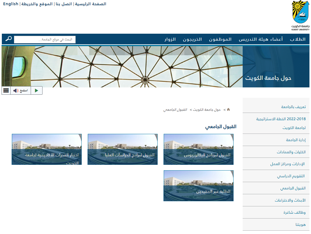 - الدخول إلى الموقع الرسمي لجامعة الكويت "من هنا".