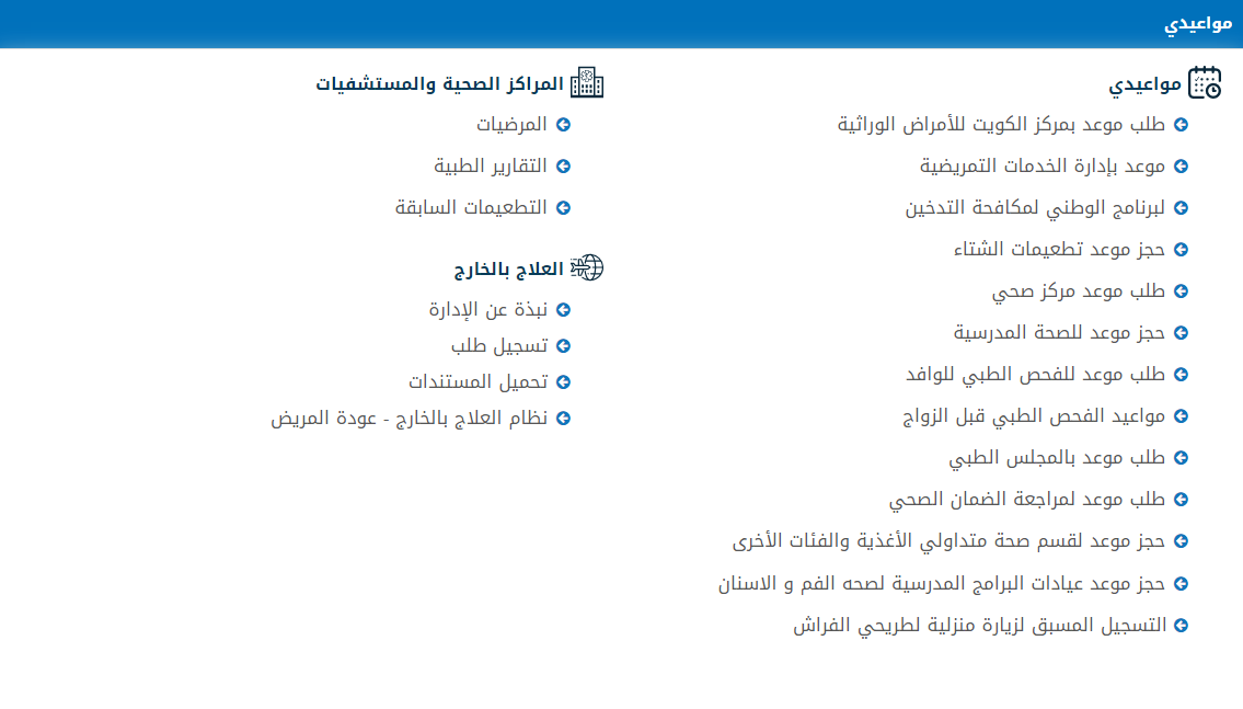 - عند الانتقال إلى صفحة الخدمات يتم اختيار خدمة طلب موعد للفحص الطبي للوافد من تبويب مواعيدي.