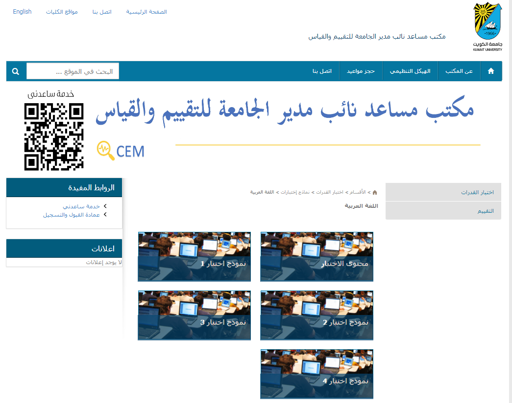 أطلقت جامعة دولة الكويت بعض النماذج لاختبارات اللغة العربية، نظرًا لأنها تدخل بشكل أساسي في العديد من تخصصات الجامعة، حيث ينقلنا الرابط التالي من خلال الإنترنت بشكل مباشر إلى نماذج اختبار قدرات اللغة العربية مع الحل بصيغة الـ pdf.