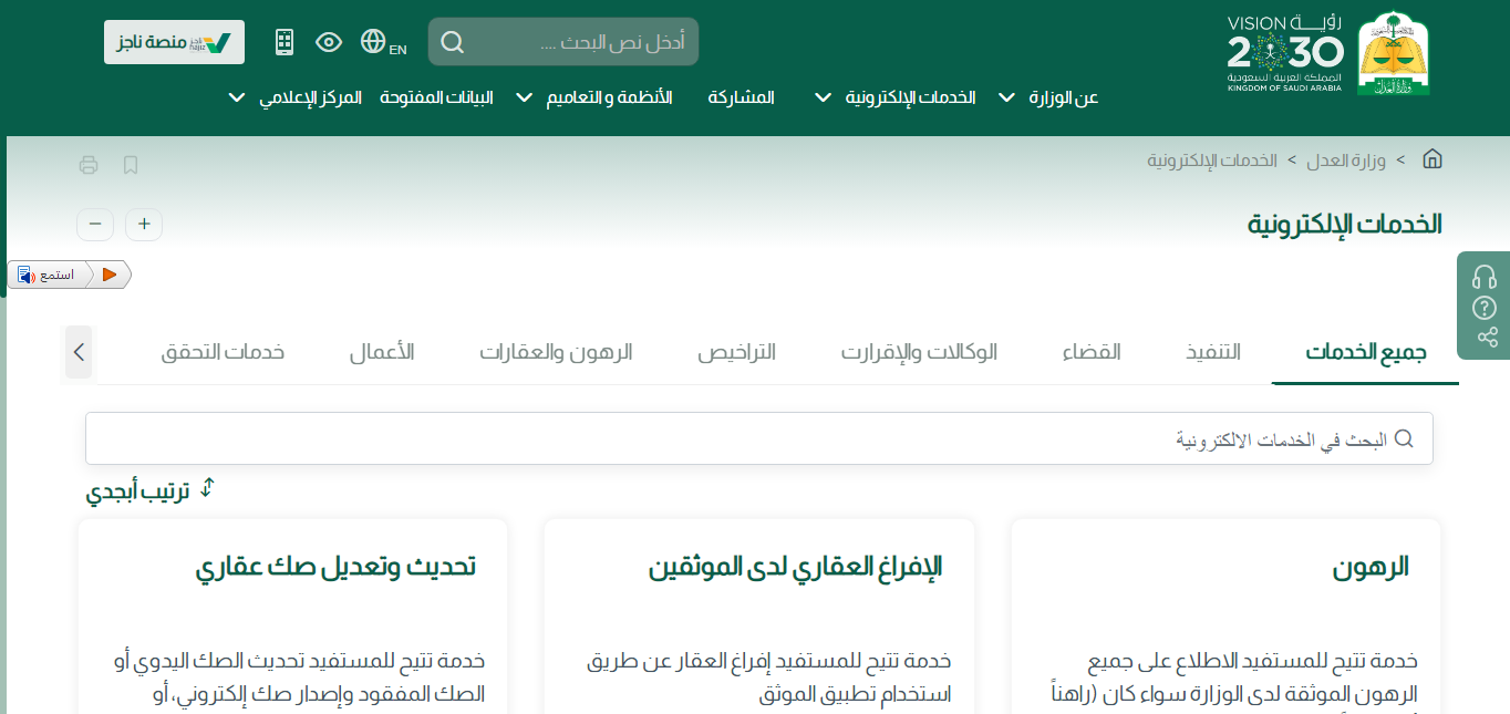 - الدخول إلى بوابة ناجز وزارة العدل.