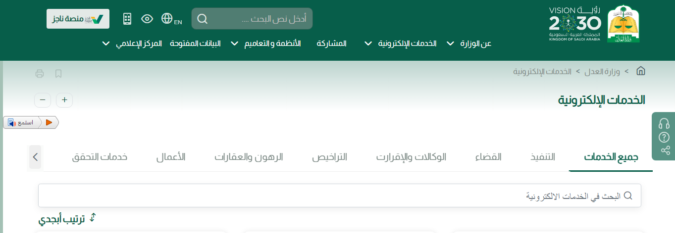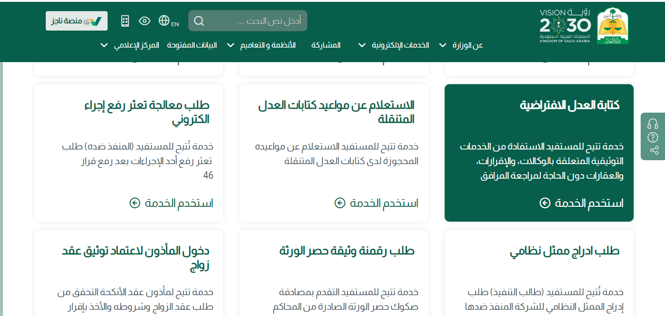 - الدخول إلى موقع وزارة العدل السعودية.