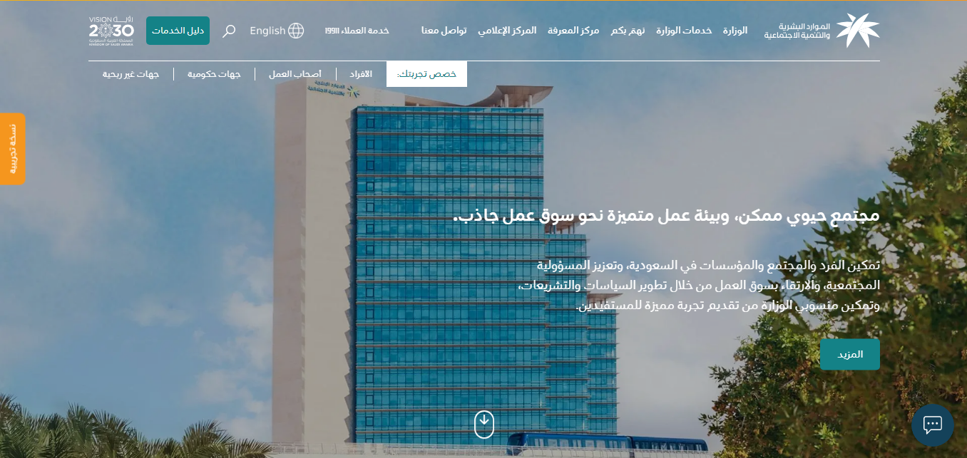 - الانتقال إلى موقع وزارة الموارد البشرية والتنمية الاجتماعية.
