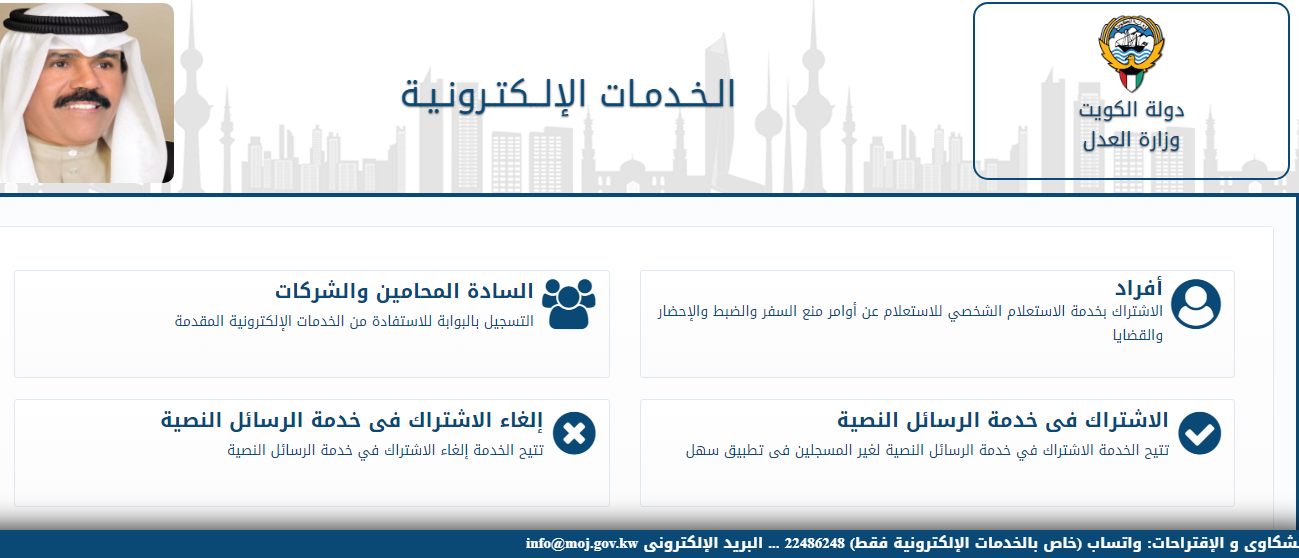 - قم بالذهاب إلى البوابة الرسمية الإلكترونية وزارة العدل الكويت.