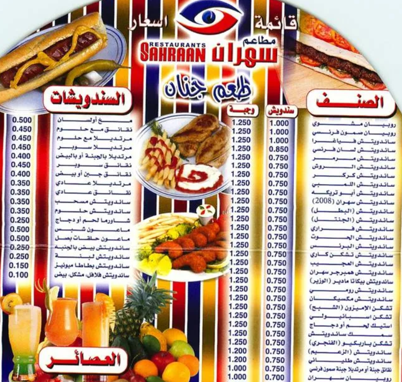 - ساندويتش سهران بسعر 1 دينار كويتي.