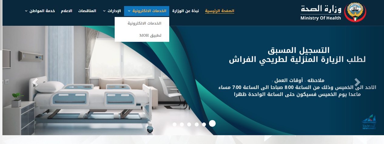 - الذهاب إلى الموقع الإلكتروني الرسمي لوزارة الصحة الكويتية.