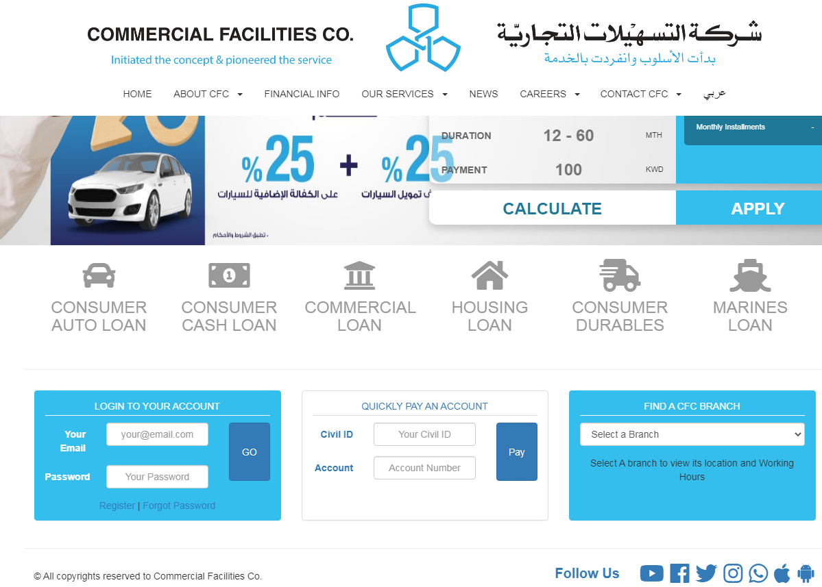 حيث يتم الوصول من خلاله إلى جميع الخدمات الخاصة بالشركة، وكذلك يتم الاستعلام من خلاله عن القروض الخاصة بالشركة، ويمكن الوصول إليه "من هنا" حيث تقديم طلب الحصول على القرض إلكترونيًا دون الحاجة إلى التواصل مع الشركة بشكل مباشر ويكفي تقديم الطلب إلكترونيًا.