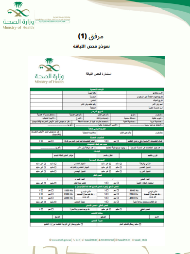 استمارة فحص اللياقة pdf وزارة الصحة السعودية