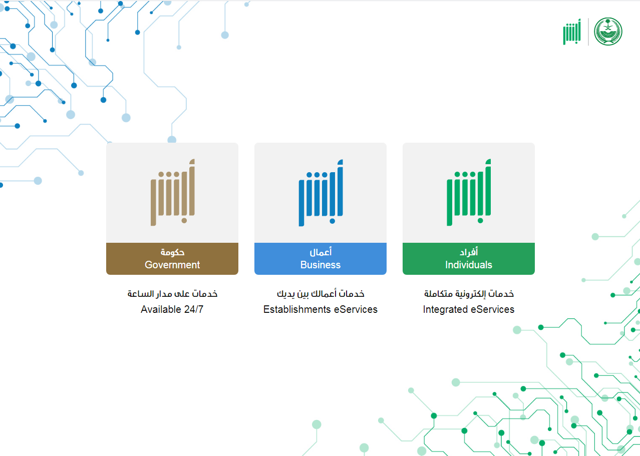 - قم بزيارة الموقع الإلكتروني لمنصة أبشر الإلكترونية التابعة لوزارة الداخلية السعودية.